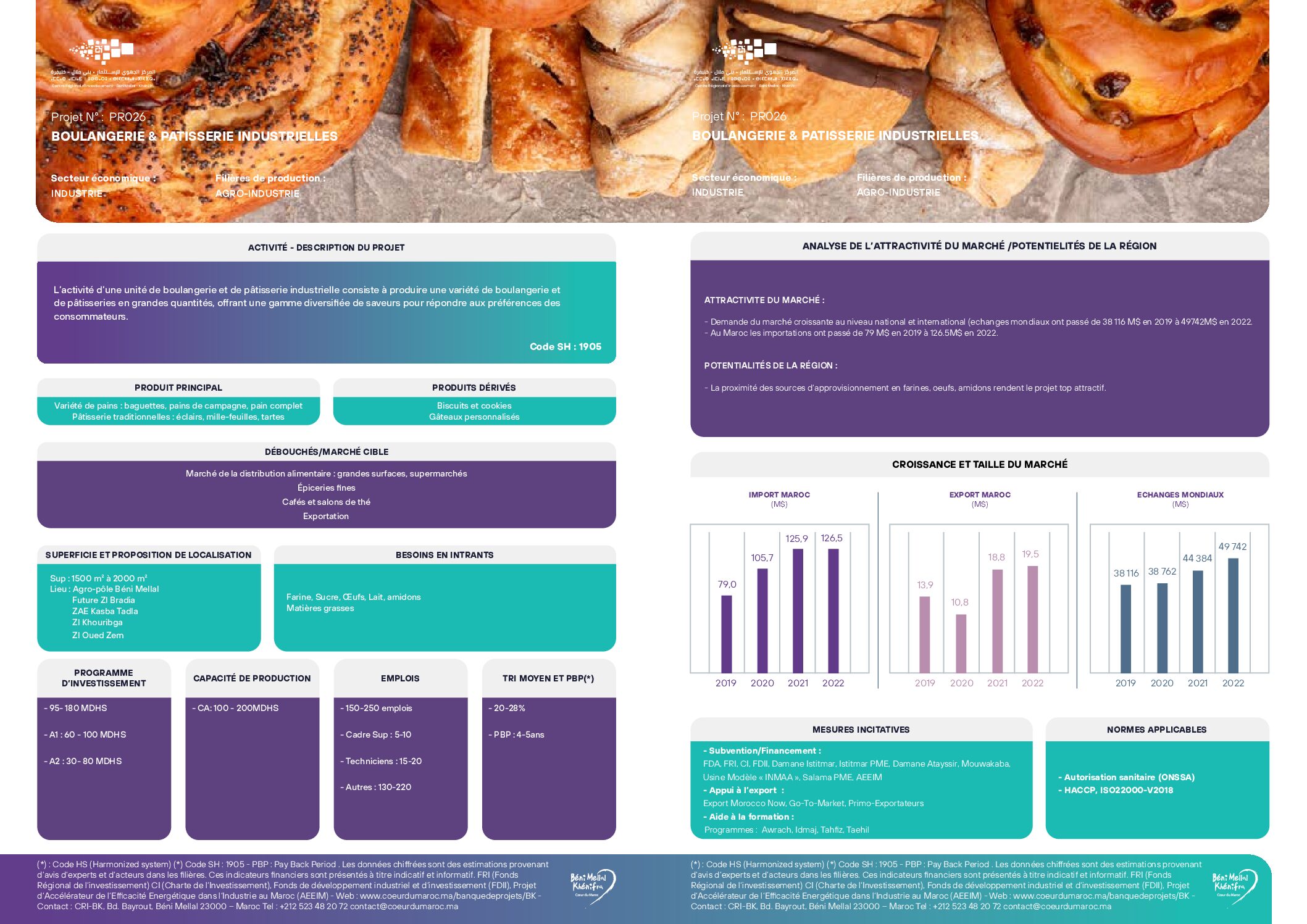 L’activité d’une unité de boulangerie et de pâtisserie industrielle consiste à produire une variété de boulangerie et