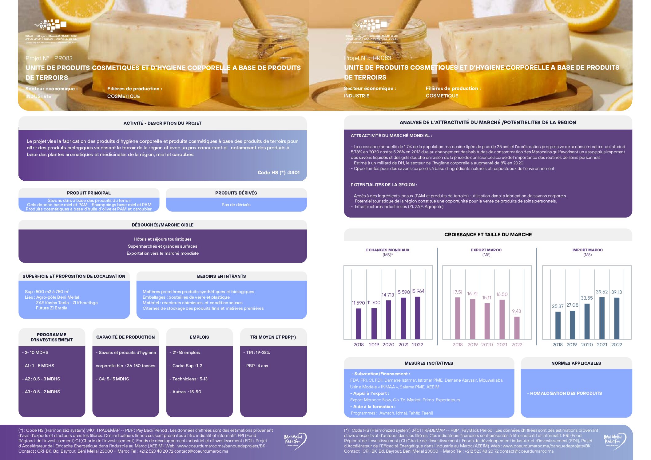 Le projet vise la fabrication des produits d’hygiène corporelle et produits cosmétiques à base des produits de terroirs pour