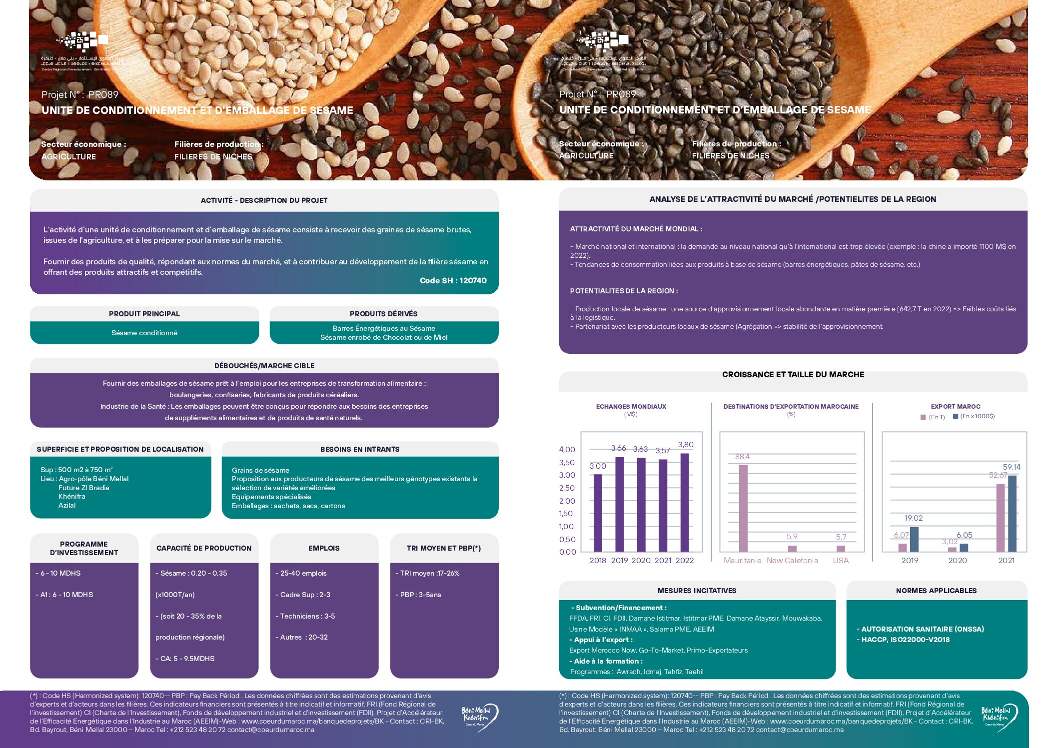 L’activité d’une unité de conditionnement et d’emballage de sésame consiste à recevoir des graines de sésame brutes,