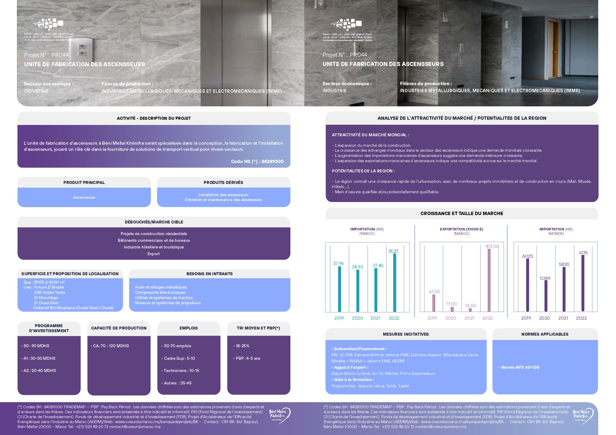 L’unité de fabrication d’ascenseurs dans la région deBéni Mellal- Khénifra va être spécialisée dans la conception, la fabrication et l’installation d’ascenseurs, notamment dans la fourniture de solutions de transport vertical pour divers secteurs.