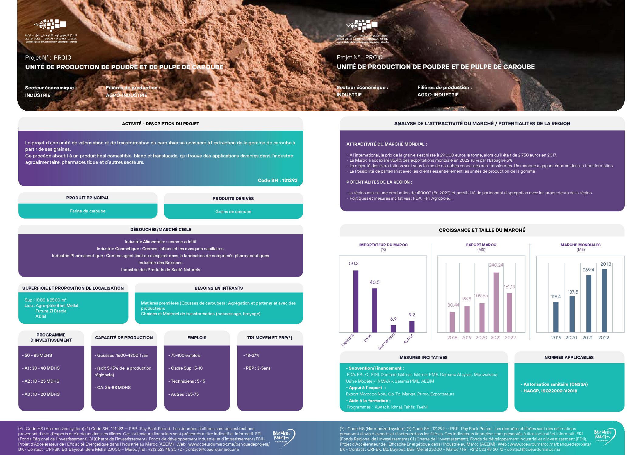 Unité de production de poudre de pulpe de caroube