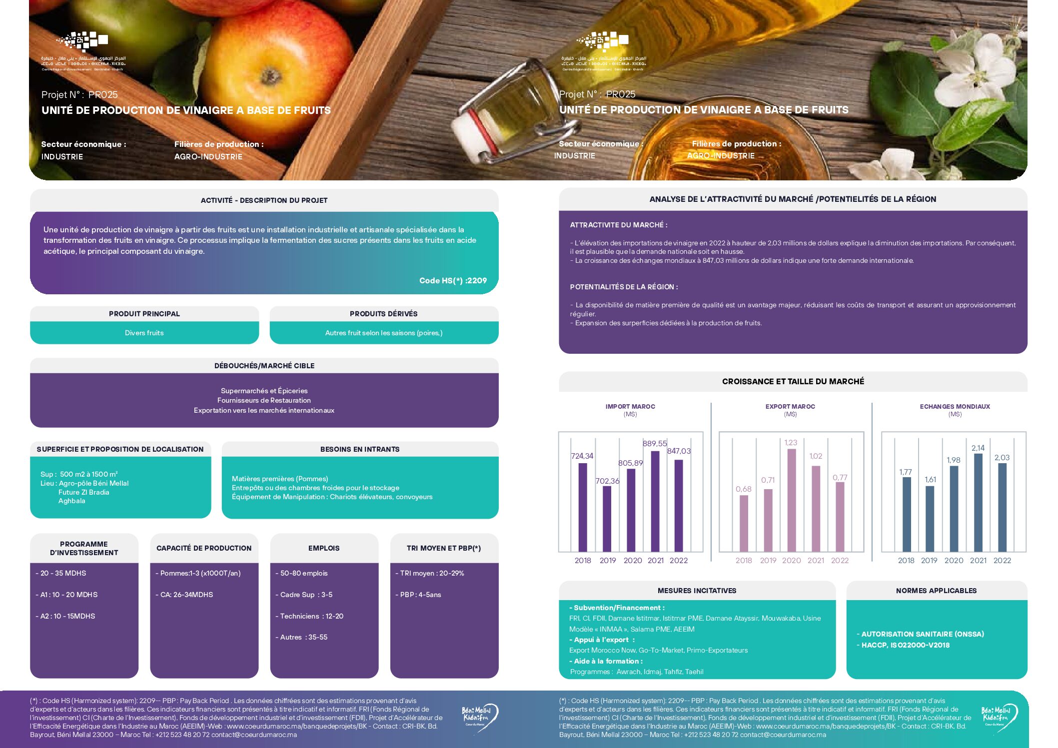 L’unité de production de vinaigre à partir des fruits est une installation industrielle et artisanale spécialisée dans la transformation des fruits en vinaigre. Ce processus implique la fermentation des sucres présents dans les fruits en acide acétique, le principal composant du vinaigre.