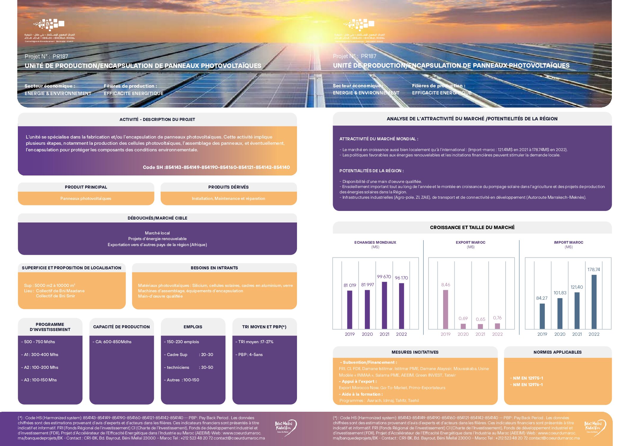 L’unité se spécialise dans la fabrication et/ou l’encapsulation de panneaux photovoltaïques. Cette activité implique plusieurs étapes, notamment la production des cellules photovoltaïques, l’assemblage des panneaux, et éventuellement, l’encapsulation pour protéger les composants des conditions environnementale.
