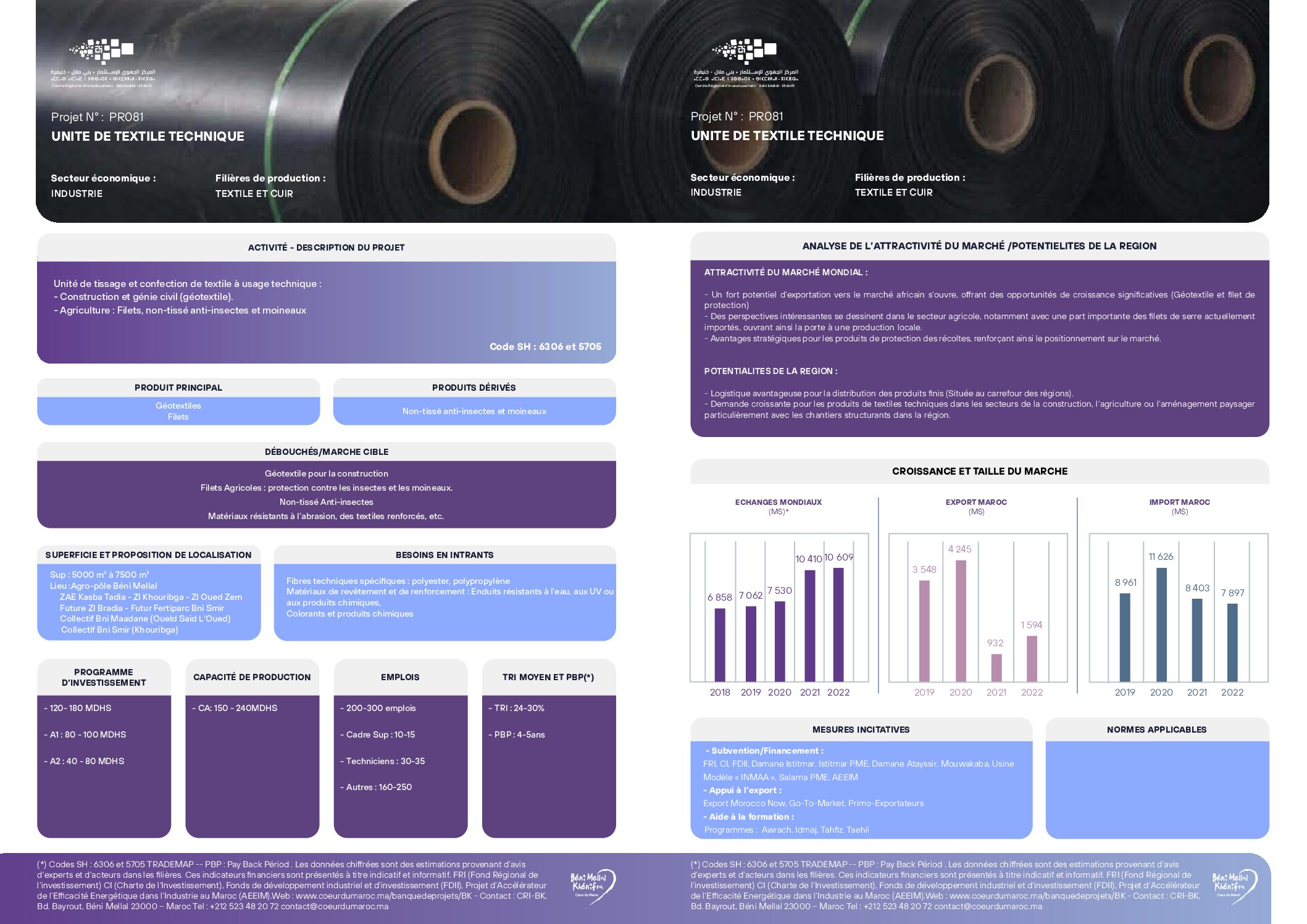– Construction et génie civil (géotextile).