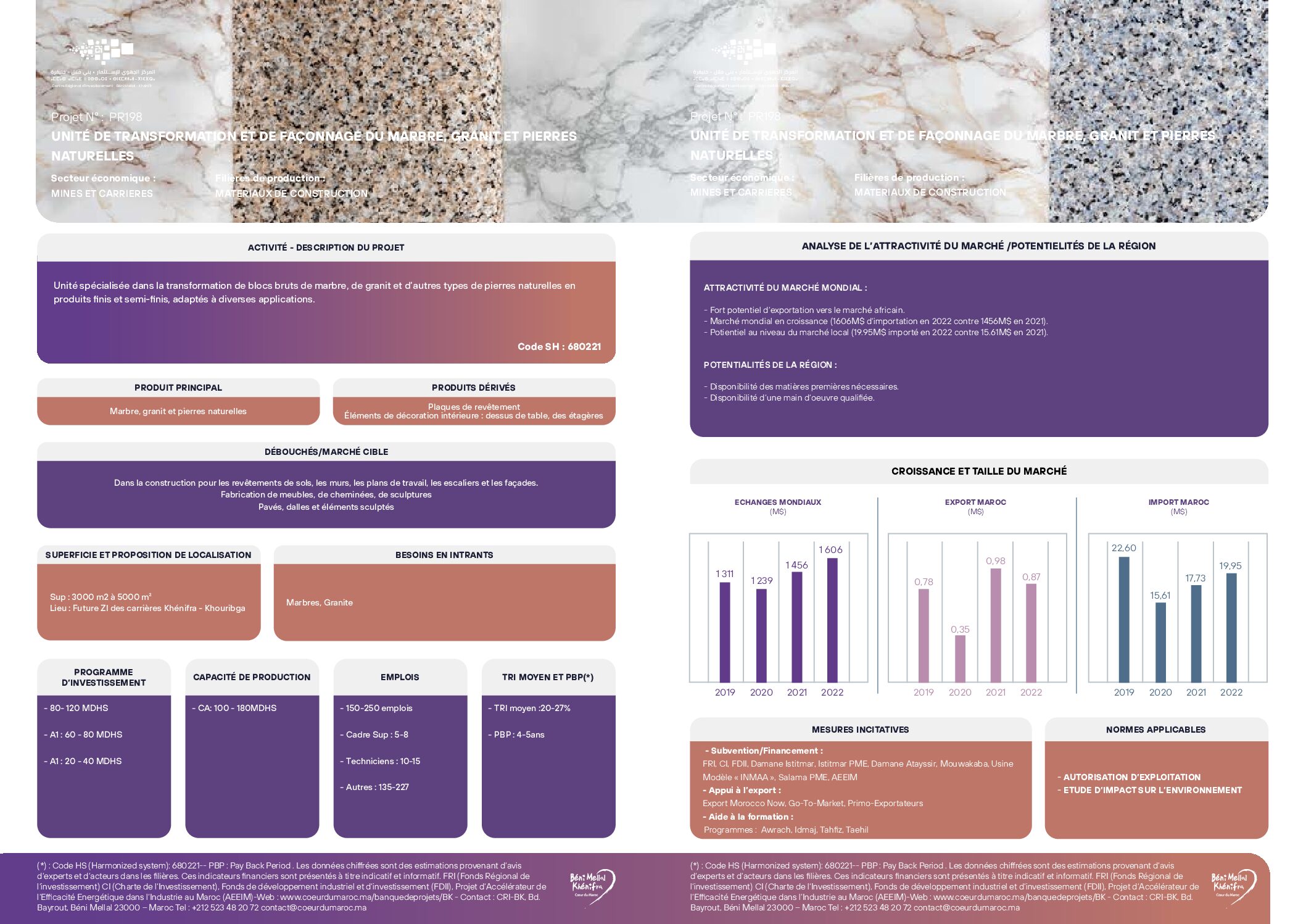 Unité de transformation et de façonnage du marbre, granit et pierres naturelles